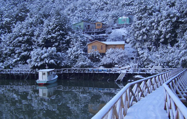 En todo el casco urbano de Caleta Tortel, Región de Aysén, sur de Chile.